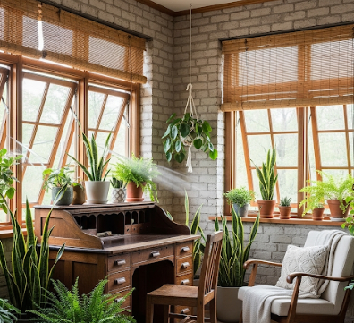 - 관엽식물 배치: 잎이 넓은 관엽식물은 증산 작용이 활발하여 실내 온도를 낮추는 데 도움이 됩니다.